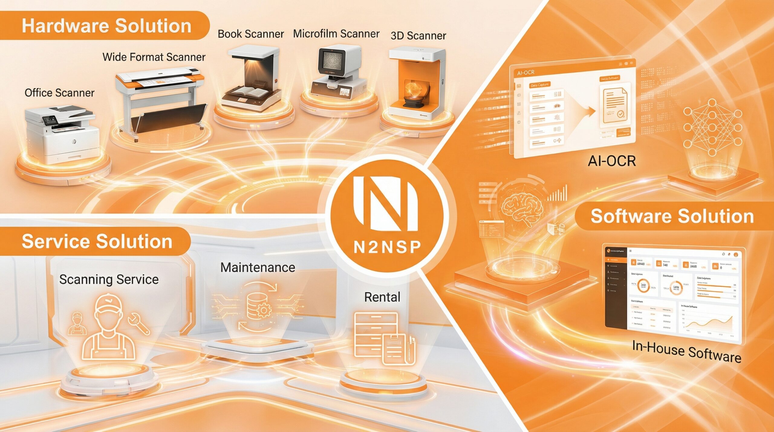 N2NSP Solution Provider คือบริษัทผู้เชี่ยวชาญด้านโซลูชันการจัดการข้อมูลและเอกสารดิจิทัลแบบครบวงจร (End-to-End Digital Solutions) สำหรับองค์กรภาครัฐและเอกชน ด้วยประสบการณ์และความเชี่ยวชาญในอุตสาหกรรม บริษัทมุ่งมั่นสนับสนุนองค์กรในการก้าวสู่การเปลี่ยนผ่านสู่ดิจิทัล (Digital Transformation) อย่างมีประสิทธิภาพและยั่งยืน