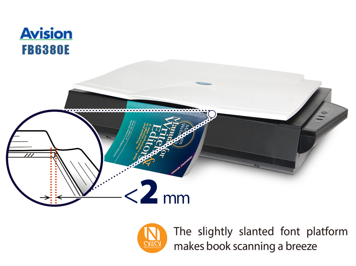 ด้วยแพลตฟอร์มด้านหน้าที่เป็นนวัตกรรมและสิทธิบัตรเฉพาะของ Avision รุ่น FB6380E จะช่วยให้คุณสแกนหนังสือได้อย่างง่ายดาย และให้ไฟล์เอกสารภาพที่คมชัดภายในระยะ 2 มม. จากสันหนังสือ การบิดเบือนของเงา และข้อความซึ่งมักพบในหนังสือที่สแกนด้วยเครื่องสแกนแบบฝาเปิด หรือ กวาดราบแบบเดิมๆนั้น จะไม่มีอีกต่อไป