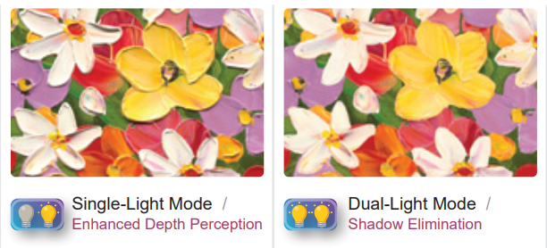 • เพิ่มมิติภาพด้วย Single-Light: สำหรับงานสแกนที่ต้องการโชว์ Texture หรือความลึก เช่น ภาพวาดสีน้ำมันหรือวัตถุที่มีผิวสัมผัส Single-Light Mode จะช่วยขับเน้นมิติและความลึก (Depth Perception) ให้โดดเด่นออกมา.
